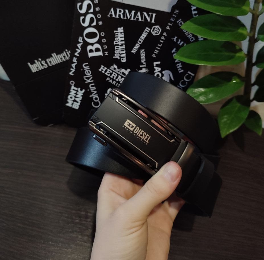 Ремінь шкіряний чоловічий, пряжка автомат Diesel 35 мм. чорний 931346