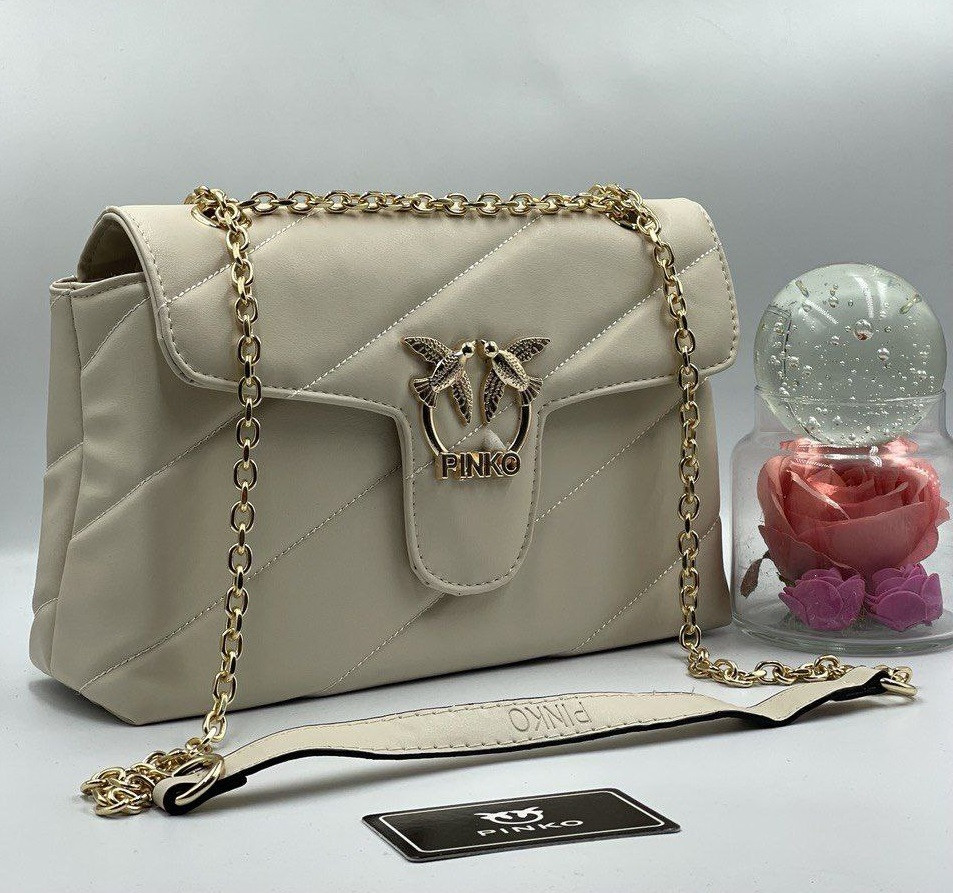 Жіноча сумка на ланцюжу Pinko, бежева, 27*18*9 см, 931383